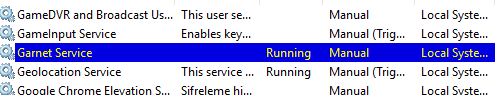 Daha sonra Garnet Service adıyla oluşturulan bu Windows Service'i Servisler üzerinden başlatılır.